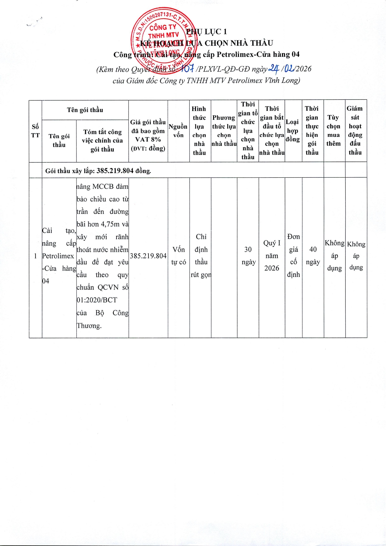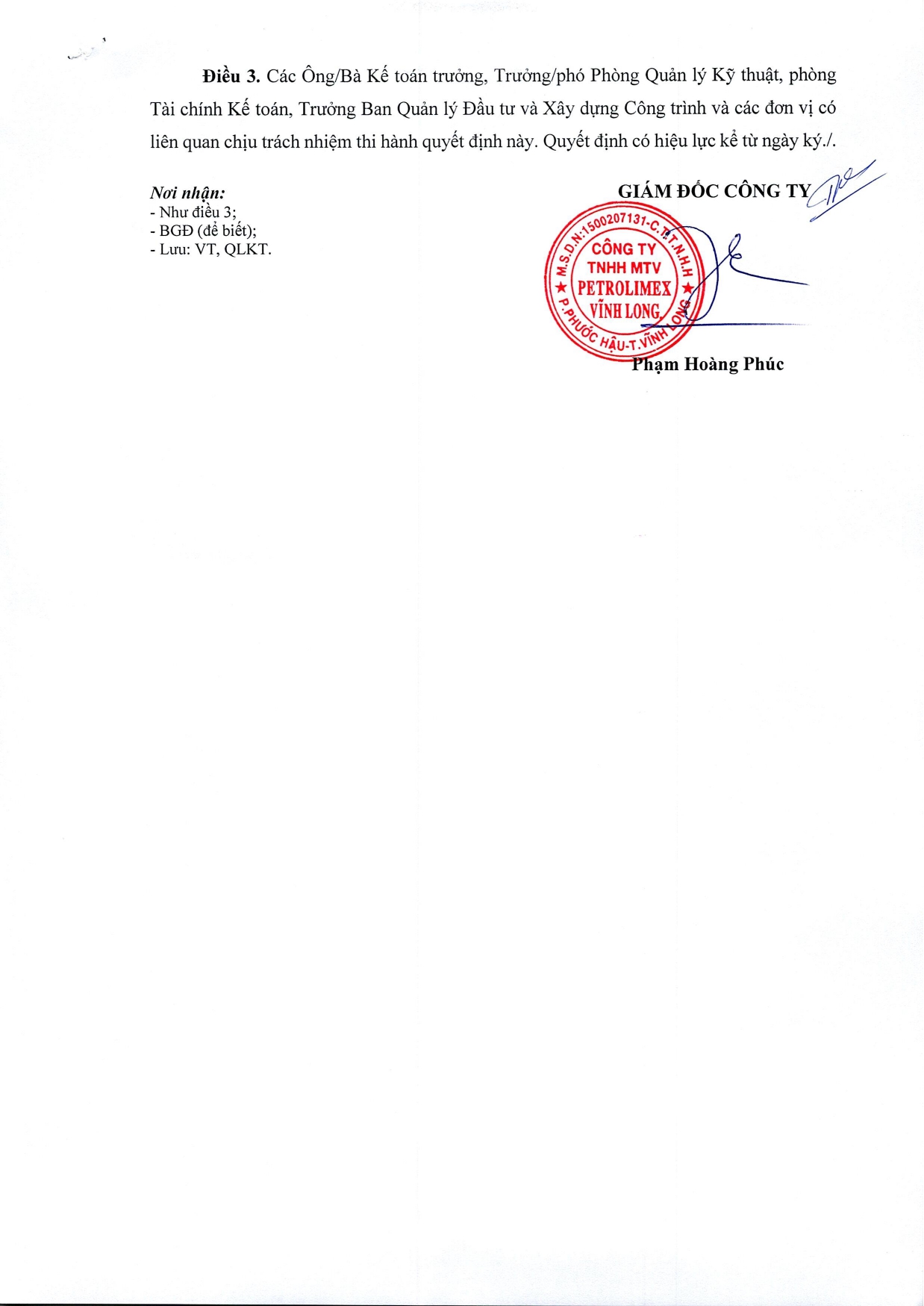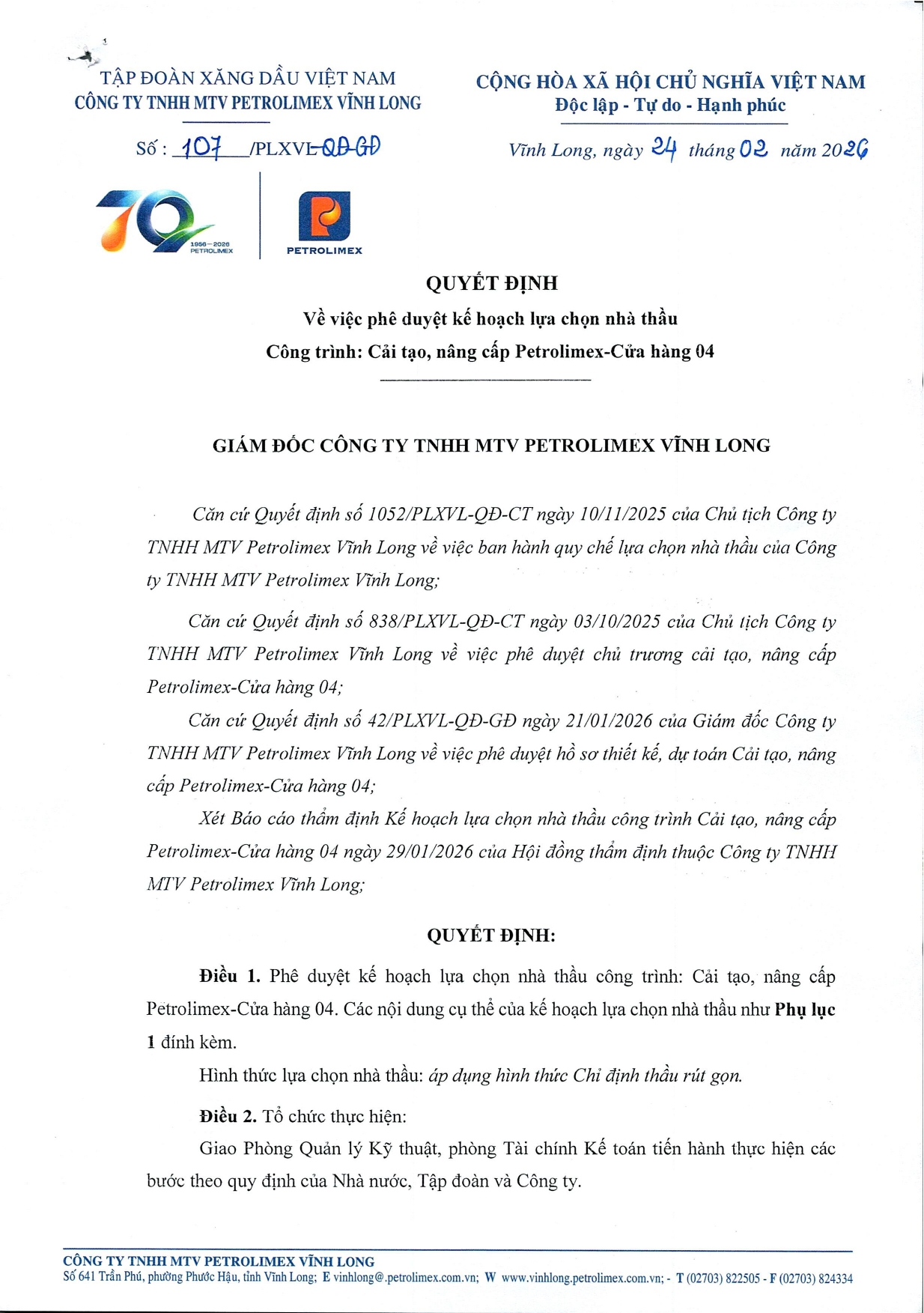 CÔNG TY TNHH MTV PETROLIMEX VĨNH LONG PETROLIMEX VINH LONG